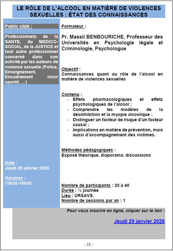 Les inscriptions sont obligatoires et se font uniquement en ligne en cliquant directement sur le lien internet ci-dessous.